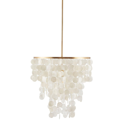 Product Features Crafted natural capiz shells diffuse soft, warm light Luxury gold finish base complements this sophisticated piece Adjustable ha...