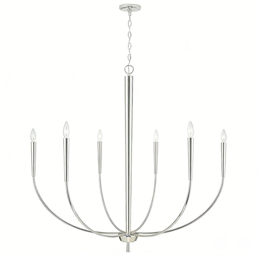 Crafted from brushed nickel metal, this chandelier radiates sleek sophistication. Its symmetrically curved arms extend gracefully, each holding a c...