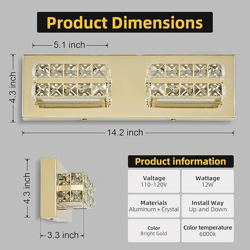 Enhance your bathroom with OKELI's Crystal Vanity Light. Designed for easy mounting above the mirror, these chrome fixtures provide dimmable cold w...
