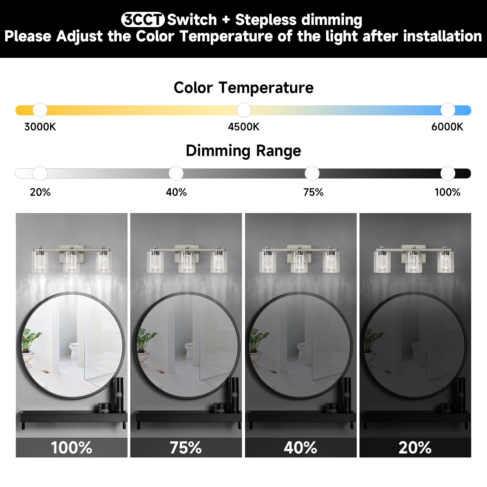 - EASY INSTALLATION: Our package includes all the necessary mounting hardware, you just need to connect the wire, and then place the glass shade. Plus, you can easily adjust between 3 color temperature modes (3000K-6000K) using the 3CCT switch, delivering an impressive luminous flux of up to 1100 lumens and high CRI (RA>80) for the brightest LED lighting, meeting all your lighting needs