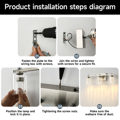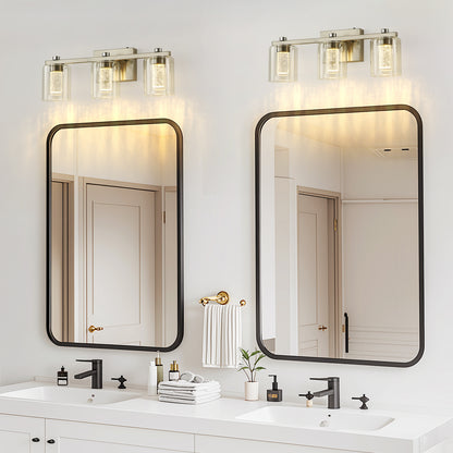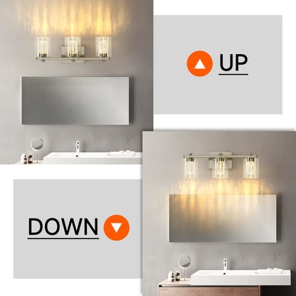- WIDE APPLICATION: This wall-mounted light fixture can be installed facing upwards for enhanced illumination, or downwards to create a softer ambiance in bathrooms and powder rooms. With a power of just 12W in total, it is 80% more energy-efficient than comparable 60W Edison lamp bulbs. This over-mirror wall lamp is ideal for the bathroom, bedroom, living room, farmhouse, hallway, porch, door, etc. Its clear glass shade adds a modern decor touch, making it a stylish addition to any room