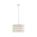 Illuminate your dining space or kitchen with the elegance of the 4-Light Glass Drum Shade Chandelier. Flaunting a white metal finish, this chandelier features a drum-shaped shade with white circle designs to create a unique mid-century look. The matching ceiling mount and chain complement the vintage design, while the 4 multidirectional light bulb sockets provide plenty of light to your space. Requires 4 Type B, 40W Maximum Wattage Bulbs (not included).
