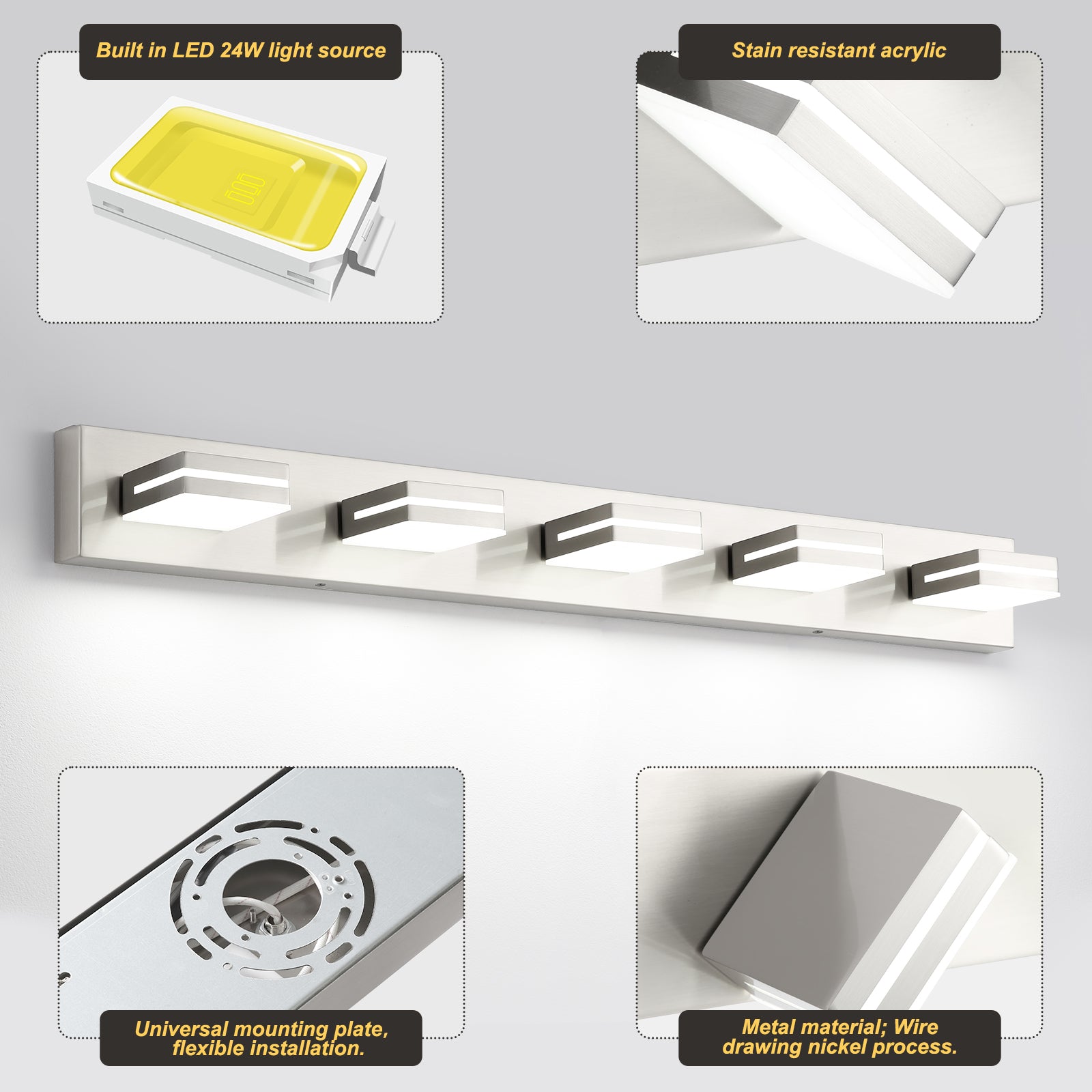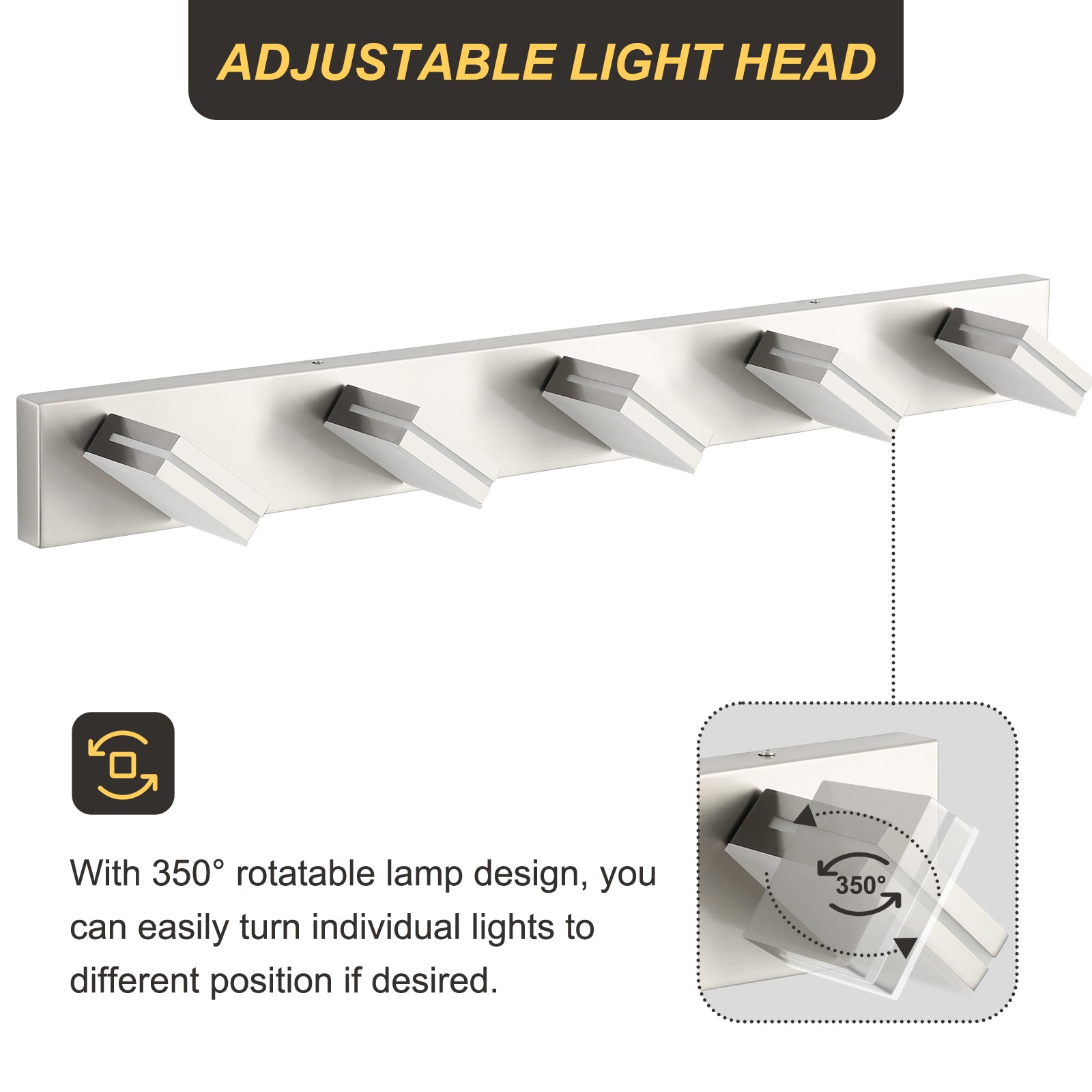 5-Light Bathroom Vanity Modern LED Light Over Mirror Dimmable Mirror Front Lighting