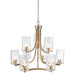 9-light Chandelier Round Tiered with Textured Glass Shades