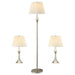 - The set includes a floor lamp along with two matching table lamps, providing cohesive lighting solutions for different areas within the room