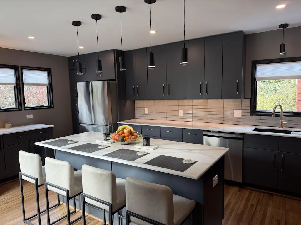 This mini pendant light features a cylindrical shape designed to illuminate kitchen islands. Its sand black finish and high-transparency COB lamp beads bring modern flair while enhancing the space. It also offers safety and efficiency with its ETL-certified driver and energy-saving COB lamp beads.