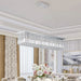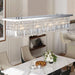 - This modern rectangle chandelier in an elegant raindrop design delivers a stylish and chic ambience and elevates the overall aesthetic of your space. Suitable for dining room, living room, kitchen island, bedroom, entryway, hallway, bathroom, hotel, office, etc.