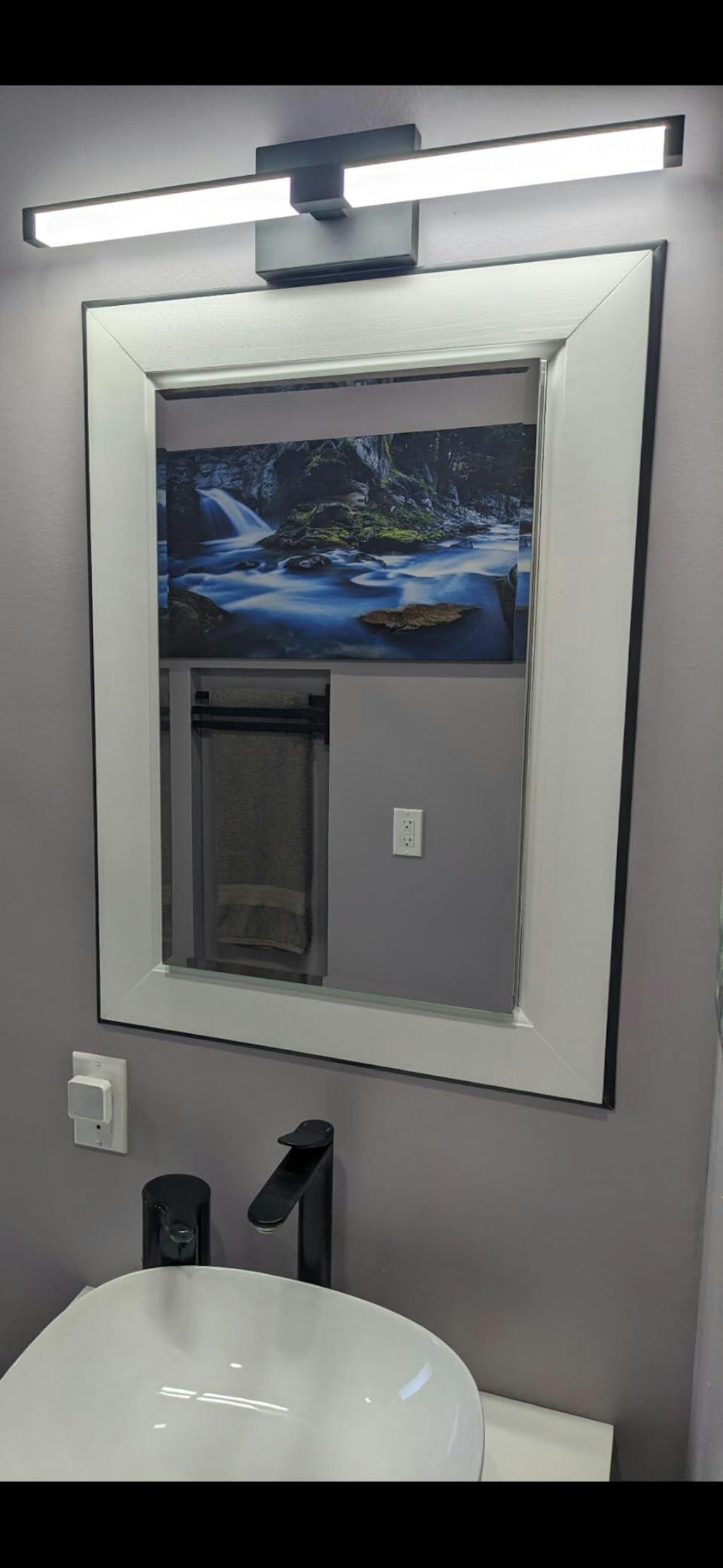 Dimmable LED vanity lights for the bathroom with 10%-100% brightness adjustment and 5 color temperature settings. Offers outstanding brightness at 16W - 3500W/4000W/4500W/5500W/6000W, compared to a traditional 60W bulb. Features high-quality, durable construction with IP44 waterproof rating. Suitable for various locations in the home. Includes 3 years of return and exchange support.