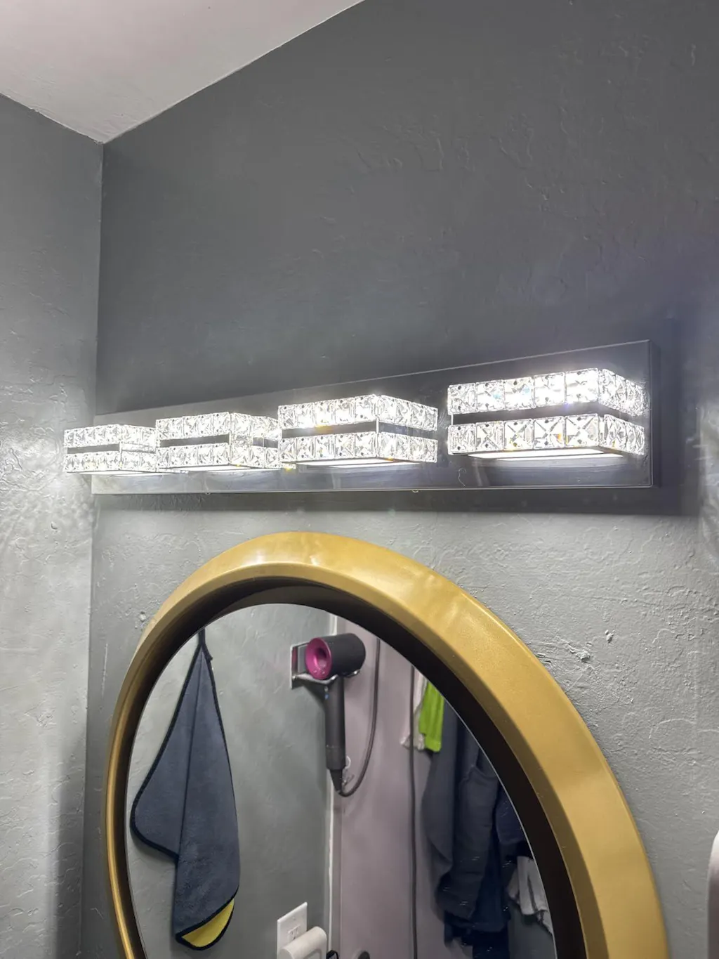 Bathroom Vanity Light Crystal Dimmable LED 3-Light Modern Chrome Fixtures