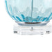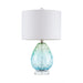 Ombre Glass Table Lamp. Beautifully designed, this glass table lamp flaunts a gorgeous Blue Green & Dark Blue hue that adds a soft touch of color to your room. The white drum-shaped lamp shade tastefully accents the base, while softly filtering the light to give off a warm glow. Plug in to a power source using the 72-inch clear cord and illuminate your décor by flipping the on/off switch located on the socket. Eye-catching and unique, this glass table lamp offers a chic update to your living room or bedroom. One Type A light bulb is needed and included.